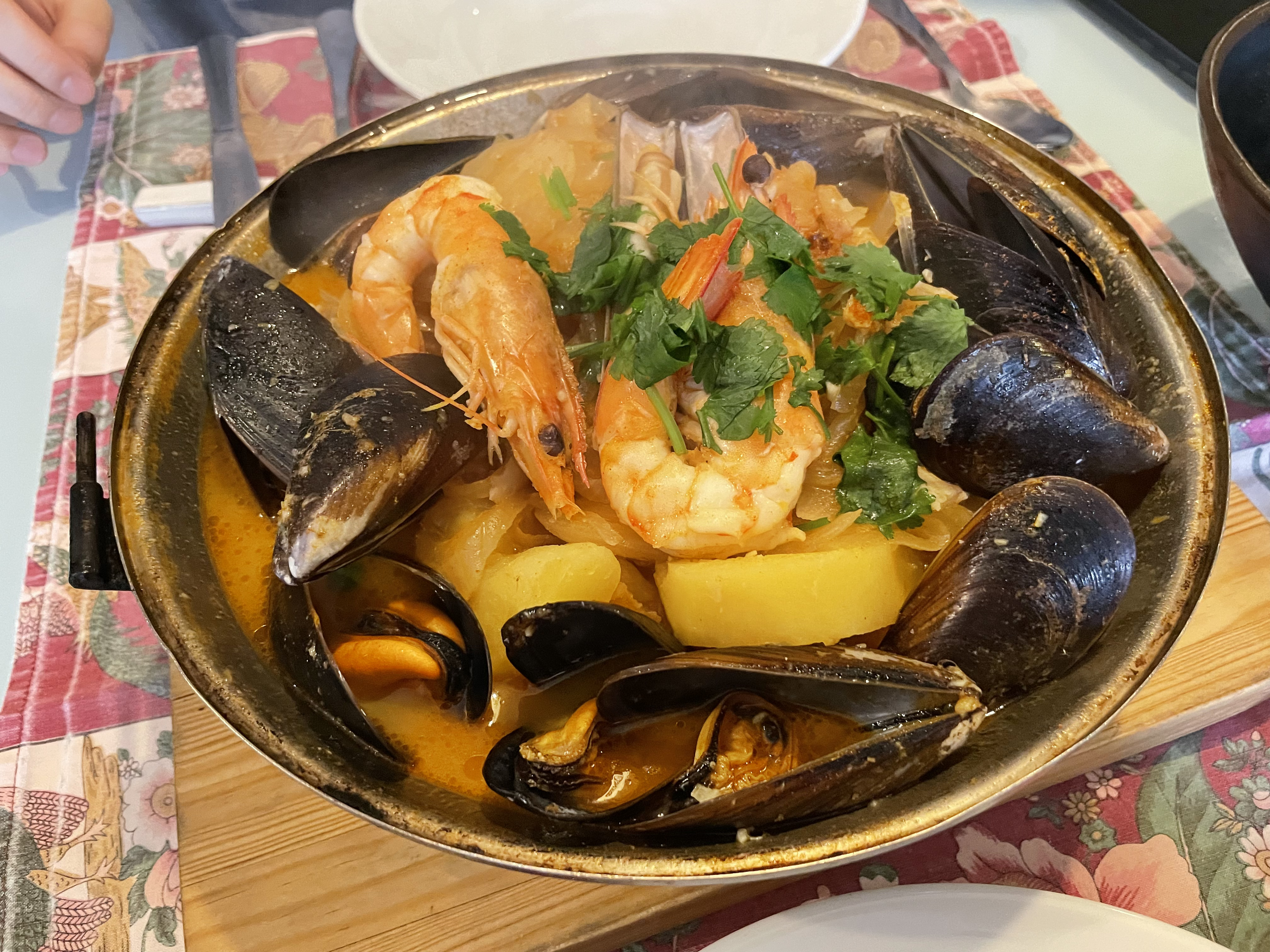 12시 오픈 예정이었는데 조금 일찍 도착했더니 벌써 문앞에 사람들이 대기하고 있었다. 2층으로 안내 받았는데 여기는 여태까지 갔던 레스토랑 느낌이 아니라 오래된 가정집같은 따뜻한 분위기여서 실내가 너무 귀여웠다. 여기는 한국인들이 고향의 맛이라며 극찬한 해물탕이 유명해서 느글느글한 우리 속을 달래줄 수 있을까하는 기대가 있었는데 우리 같은 사람들이 많았는지 2층 테이블의 대부분이 한국인들이었던 것 같다. 그리고 해물탕이 나왔는데...