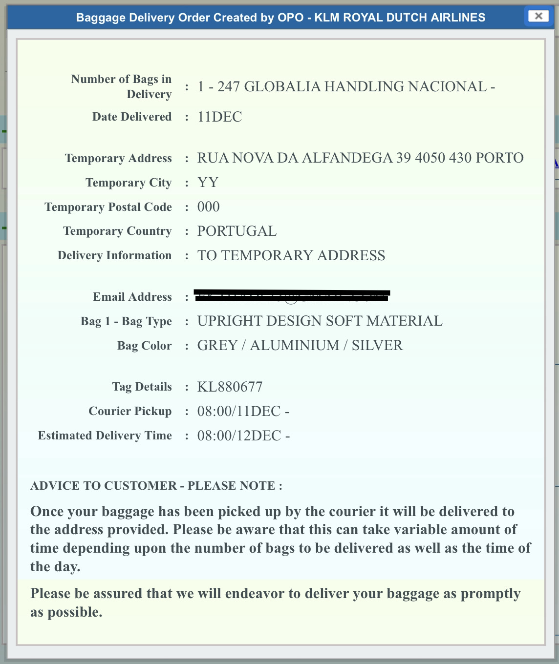 캐리어를 찾았고 내일 8시에 배송 예정이라는 내용이 있었고 기쁨도 잠시, 걱정이 밀려왔다. 왜냐하면 내일은 숙소를 이동해야 하는 날이라 예상 도착 시간보다 늦어지면 캐리어를 못받을 수도 있기 때문이었다. 그래서 캐리어를 찾았다는 연락이 오면 공항으로 직접 찾으러 갈 계획이었으나 캐리어를 찾으면 연락준다는 말과 달리 메일도 문자도 오지않았었고, 분실신고 했을때 받은 고객센터 전화번호로 전화를 해보려고하니 8시부터 영업시간이라 당장 연락을 할 수도 없었다. 그렇게 8시까지 뜬눈으로 안절부절 못하고 있다가 8시에 고객센터로 전화를 했다. 이 날이 하필 일요일이었는데 주말이라 고객센터 운영을 안한다는 자동응답기만 연결되고 전화가 끊겼다. 그래서 포르투 공항 전화번호를 찾아 직접 전화를 해봤는데 본인들 소관이 아니라며 항공사 번호를 알려줘서 열심히 받아적었는데, 그 번호로 전화를 걸려고 보니 아까 전화했던 바로 그번호.. ㅠ