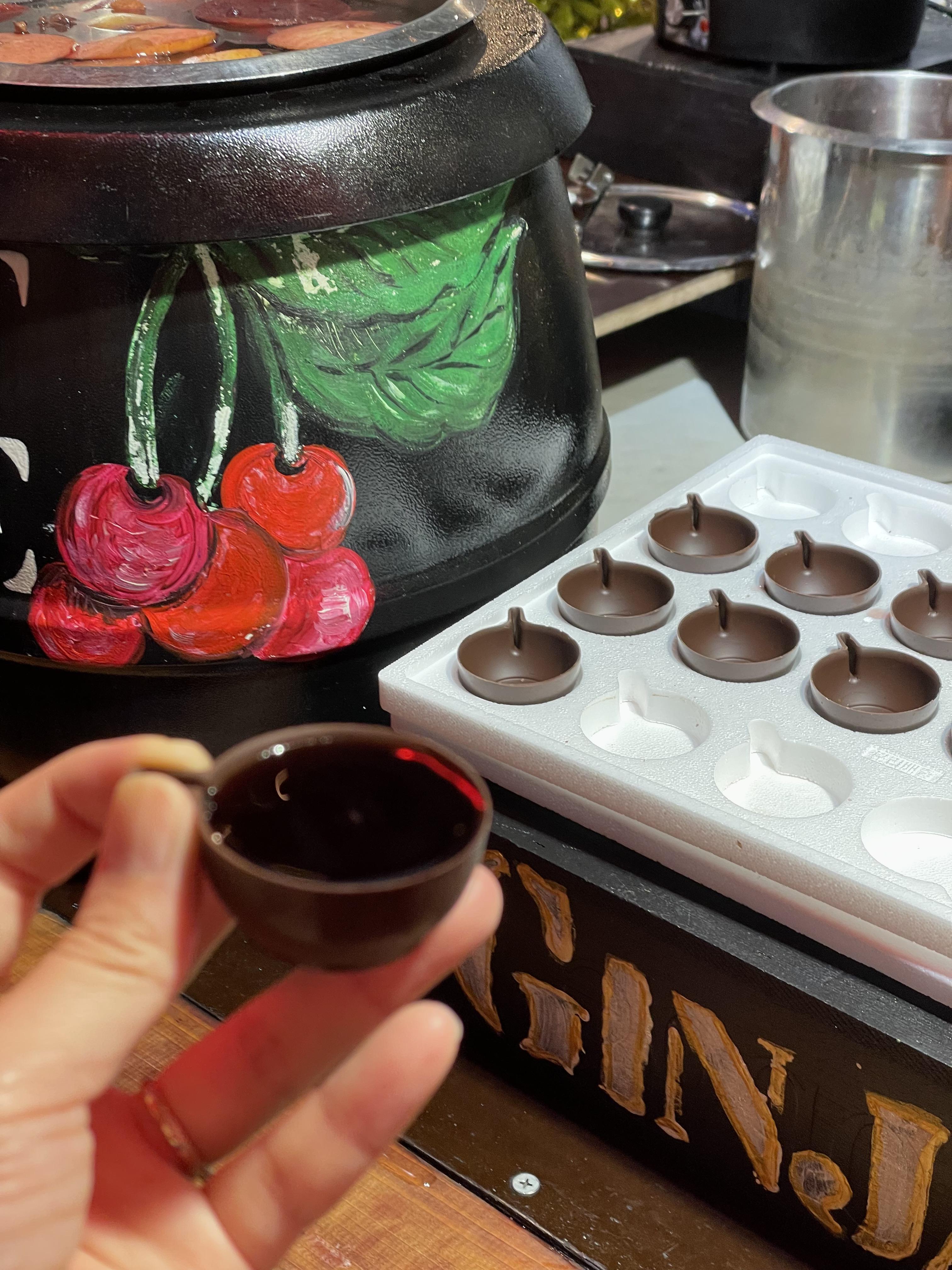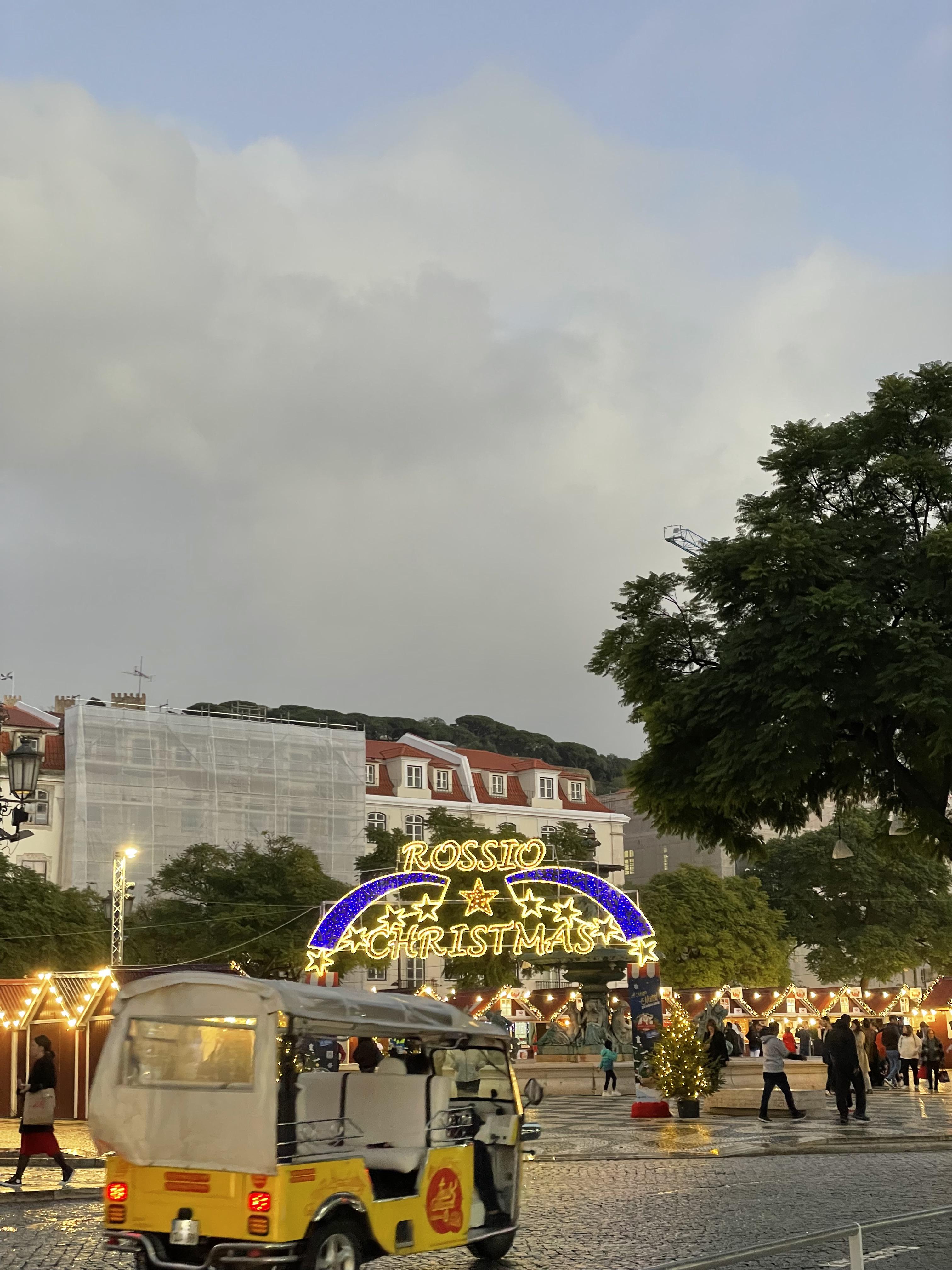 역에서 조금 걸어가니 호시우 광장에서 크리스마스 마켓을 하고 있었다. 포르투갈에 와서 처음 보는 크리스마스 마켓! 유럽은 12월이 되면 대부분의 나라에서 크리스마스 마켓이 열린다고 하는데 포르투갈 답게 아주 귀엽고 아기자기한 크리스마스 마켓이었다. 쓸데 없는 거 사기 싫어하는 우리는 살게 아무것도 없었지만 그래도 마켓에 왔는데 뭐라도 사보고 싶어 기웃기웃 대다가 초콜릿 컵에 마시는 술을 발견했다. 그때는 뭔지 잘 몰랐는데 지금 찾아보니 리스본 전통주인 진자(Ginja) 라고 부르는 체리주였다. 한잔씩 팔고 있었고 주문하니 초콜릿으로 만든 컵에 술을 담아서 줬는데 엄청 독하면서도 달달한게 맛있었다! 한잔씩 먹으니 몸이 따땃해지는게 기분이 좋았다.